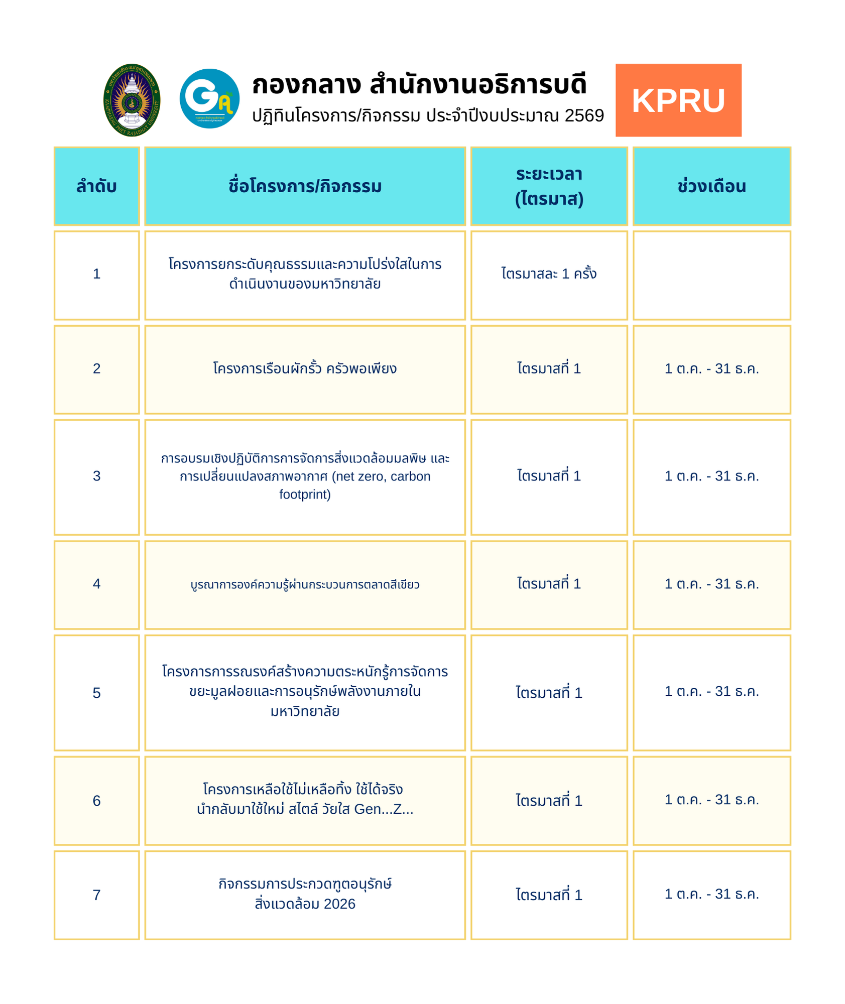 3. เป็นต้นแบบและเป็นแหล่งเรียนรู้เพื่อสร้างเครือข่ายความร่วมมือการจัดการด้าน สิ่งแวดล้อม โครงการสำนักงานสีเขียว (Green Office) ภายในมหาวิทยาลัย และยกระดับการบริหารจัดการด้านการจัดการสิ่งแวดล้อมสู่มหาวิทยาลัยสีเขียว (Green University)