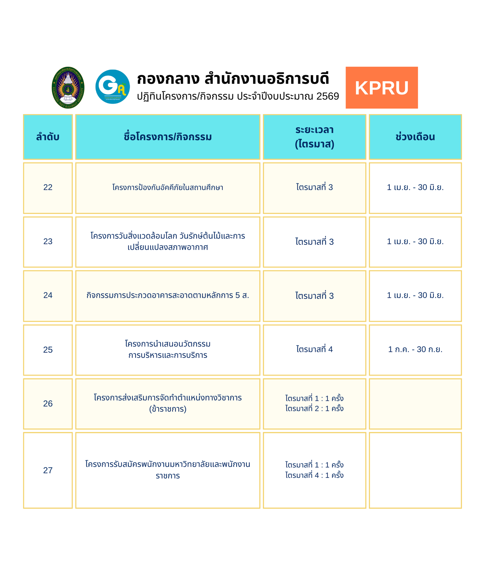 | พนักงานมหาวิทยาลัยจากเงินรายได้ (สายสนับสนุน) | 5 | 2 | 2 | 2 | 3 | 2 | 0 | 0 | 0 | ||